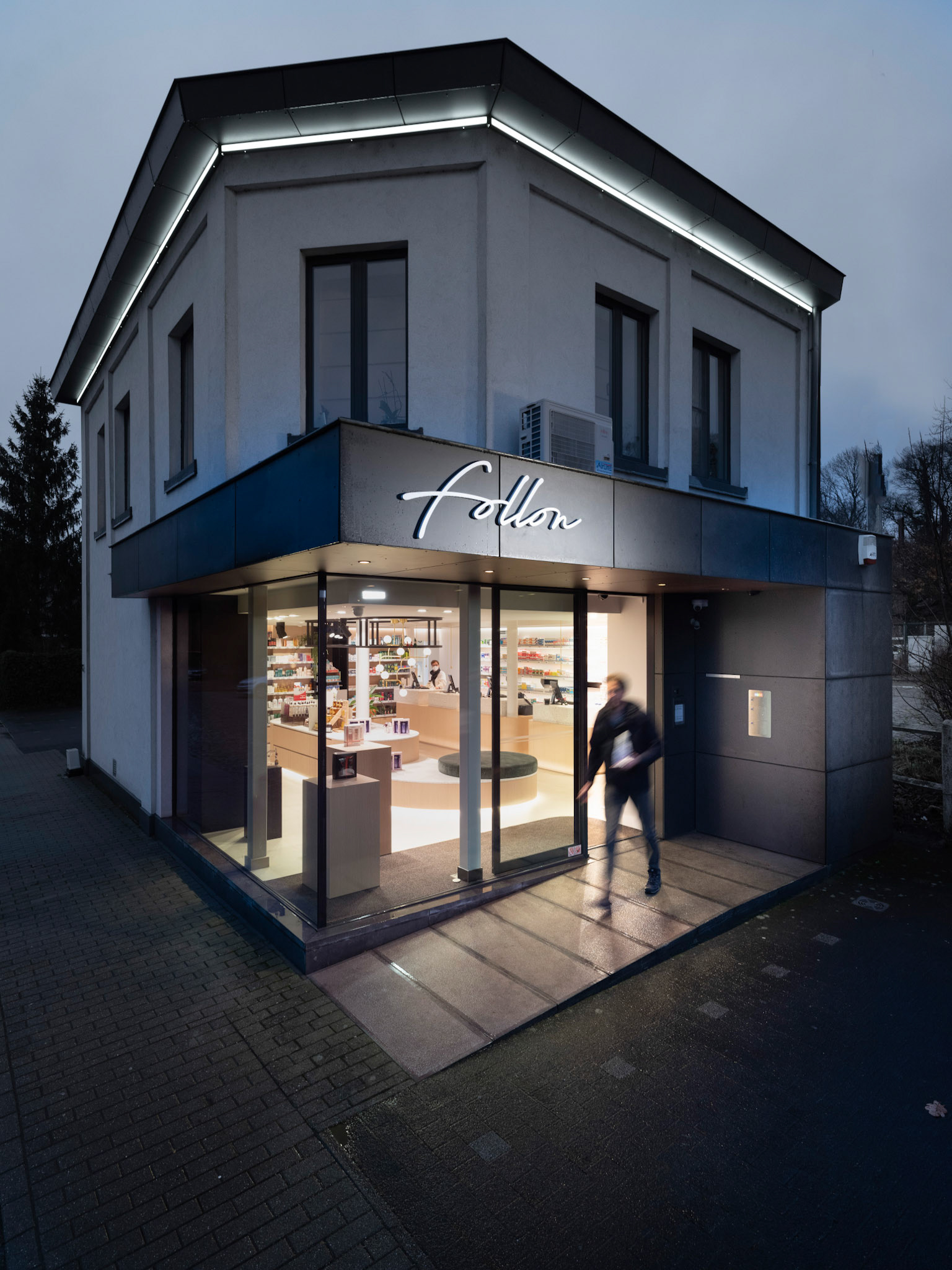 Ondanks de strakke lijnen van het design en het gebruik van één enkele houtsoort, is geen enkel meubel recht. Van Overstraeten heeft alle meubels met afgeronde hoeken ontworpen, waardoor ze een unieke en organische uitstraling hebben. De zacht-fluwelen kussens voegen extra comfort toe en versterken de vormen van het meubilair. De 'zitbank' is zo prachtig vervaardigd dat ik durf te wedden dat patiënten aarzelen om erop plaats te nemen. Gelukkig hoeven ze niet lang te wachten, want in de back office zorgt een robot ervoor dat de medicatie binnen enkele seconden wordt aangereikt.